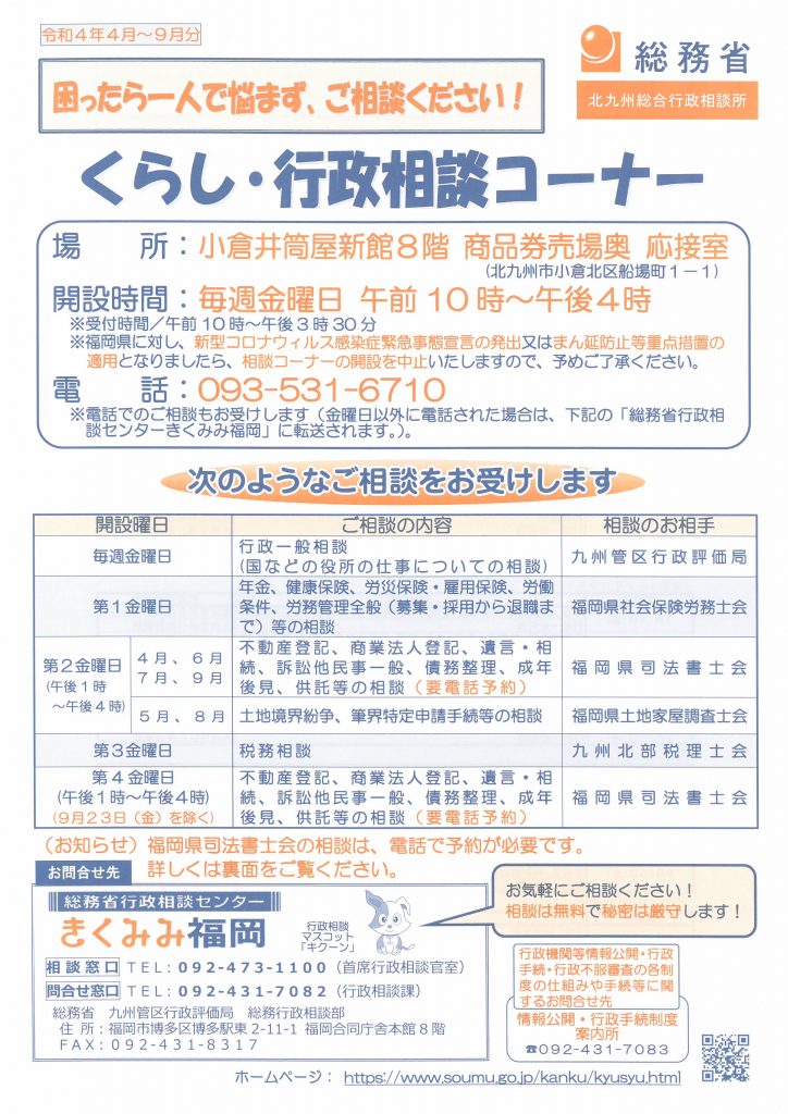 - 令和4年5月の無料相談会のお知らせ